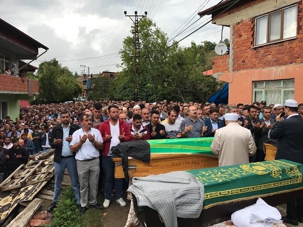Evlerinin önünde Kur’an-ı Kerim okunduktan sonra dua edilerek helallik alındı. Bu esnada fenalık geçiren cenaze yakınlarına Acil sağlık ekipleri müdahale etti. İkindi namazına müteakip kılınan namazın ardından cenazeler gözyaşları ve dualar arasında aile mezarlığına defnedildi. (Kaynak: Bartın Olay Medya)