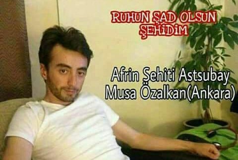 Genelkurmay Başkanlığı Suriye’de düzenlenen “Zeytin Dalı” operasyonu ile ilgili olarak operasyonda şehit düşen askerimizin açıklamasından sonra Afrin şehidinin Ankara ilinden Piyade Astsubay Üst Çavuş Musa Özalkan olduğu belirlendi. Şehit askerin naaşı ilk olarak Kilis’e, daha sonra Gaziantep Adli Tıp Kurumu’na getirildi. (Haber Merkezi)