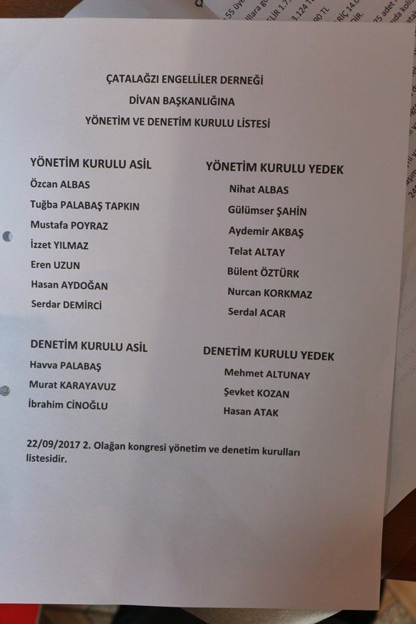 İşte Çatalağzı Engelliler Derneğinin yeni yönetimi;