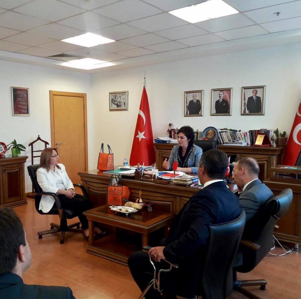 Zonguldak MHP İl Kadın Kolları Başkanı Mevlüde Yalçıner ve yönetimi geçtiğimiz gün Ankara Genel Merkez’de temaslarda bulunmak üzere MHP Genel Merkezini ziyaret etti. Kadın Kolları Genel Koordinatörü ve Genel Başkan Başdanışmanı Nevin Taşlıçay tarafından kabul edilen heyet burada görüş alışverişinde bulundular. MHP yönetimi daha sonra Taşlıçay’a Çaycuma’nın meşhur manda yoğurdu ve çeşitli hediyeler takdim ettiler.