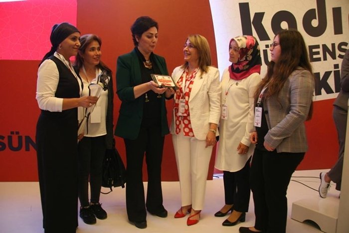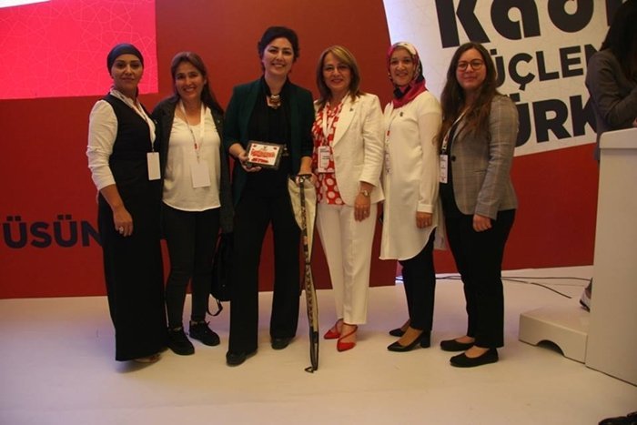 21-23 Eylül 2018 tarihleri arasında MHP Genel Merkez Kadın Kolları Koordinatörlüğü tarafından düzenlenen “Kadınlar Güçlensin, Türkiye Büyüsün” temalı toplantıya katılan Zonguldak İl ve İlçe Başkanları Kadın Kolları Koordinatörü Nevin Taşlıçay’a şilt ve Devrek bastonu hediye ettiler.