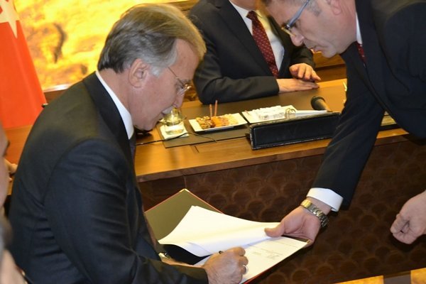 İmza töreninde Konuşan Karabük Belediye Başkanı Rafet Vergili, Bakan Özlü’ye 8 yıllık görev süresinde Karabük’e yaptığı hizmetler hakkında kısa bir brifing verdi.