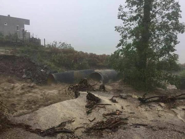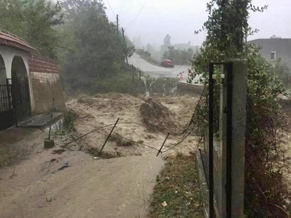 İlçede taşan dere yüzünden ondan fazla dükkan sular altında kalırken Tekkeönu Çayaltı Köyünde bir iş makinesi sel sularının sürüklediği taş ve çamurun içinde kaldı.