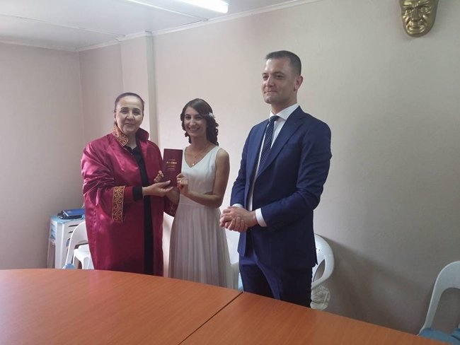 “Çok sevdiğim ve beraberce beldemizde eğitime hizmet ettiğimiz Gazi Ortaokulu Müdür Yardımcısı Zafer Günlü’nün nikahını kıymak bizlere nasip oldu.Çok ama mutlu olun Semra~Zafer” (Haber Merkezi)
