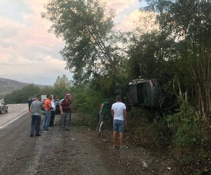 Zonguldak-Ankara Karayolunda Eceler Köyü girişinde kaza meydana geldi. Yolun ıslak olması dolayısıyla otomobil yoldan çıkarak bahçeye uçtu.