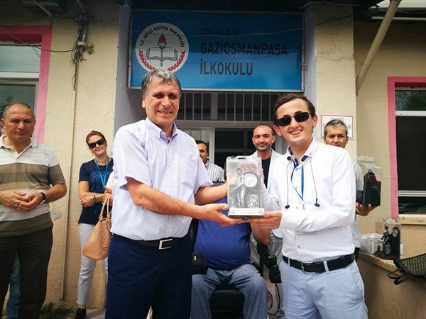 “Bir Tebessüm Bin Tebessüm Mutluluk Grubu” Hatay ve İstanbul Temsilciliği ve Çatalağzı Engelliler Derneği üyeleri tarafından okul binası önünde ihtiyaç sahiplerine hediyeleri verildi.