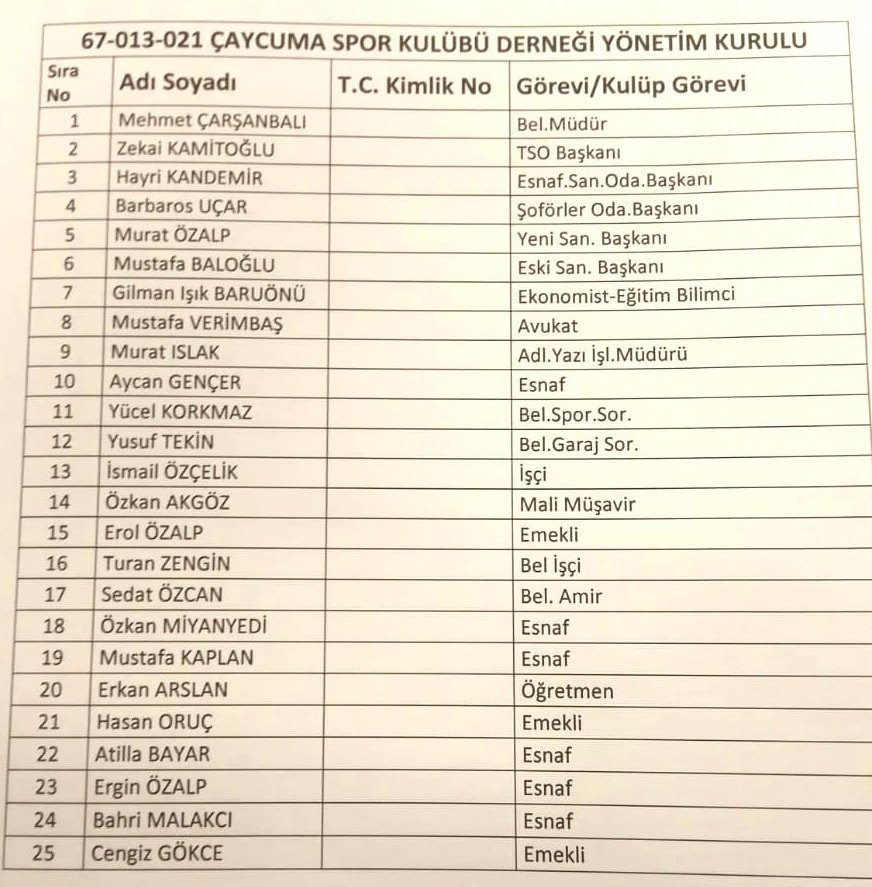 Süper Amatör lig takımlarından Çaycumaspor dün yaptığı Olağan Kongre ile yeni başkanını belirledi. Yapılan kongrede Çaycuma Belediyesi’nde Müdürlük görevini yürüten Mehmet Çarşambalı kulübün yeni başkanı oldu.