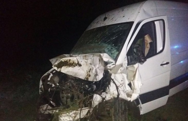 Zonguldak’ın Çaycuma ilçesine bağlı Nebioğlu beldesi Kozcağız karayolunda meydana gelen kazada bir minibüs gece yola başıboş halde çıkan mandalara çarptı. Kazada 2 kişi yaralanırken mandalar telef oldu.