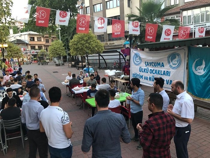 Düzenlenen iftar yemeğine; MHP Gökçebey İlçe Başkanı Tuna Çapcı, MHP İl Yöneticisi ve Bölge Başkanı Mustafa Kaplan, İlçe Kadın Kolları Başkanı Sevim Candan, Türk Eğtim-Sen Şube Temsilcisi Tarık Arslan, Türk Büro-Sen İlçe Temsilcisi Savaş Tuluk, İlk-Sen Temsilcisi Cengiz Yılmaz, Ülkü Ocakları Çaycuma İlçe Başkanı Alim Çolak, Gökçebey Ülkü Ocakları İlçe Başkanı Zeki Maloğlu, esnaflar, vatandaşlar ve partililer katıldı. (Haber Merkezi)