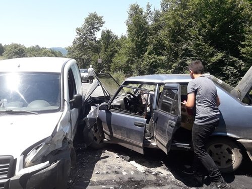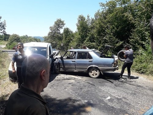 Zonguldak’ın Çaycuma ilçesinde 2 araç kafa kafaya çarpıştı. Meydana gelen kazada 2 kişi yaralandı.
