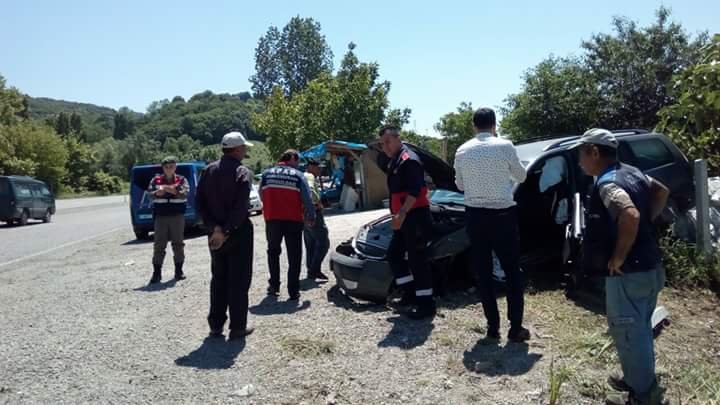 Zonguldak’ın Çaycuma ilçesinde sürücüsünün direksiyon hakimiyetini kaybettiği otomobil karşı şeride geçerek karşı yönden gelen araçla çarpıştı. Kazada 3 kişi yaralandı.