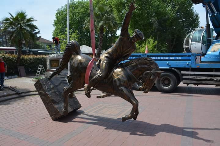 Çaycuma ilçesinin Atatürk Caddesi üzerinde kalan ve törenlerin yapıldığı Atatürk meydanındaki heykel Çaycuma Belediyesi ekipleri tarafından eskisi sökülerek yerine yeni Atatürk heykeli konuldu. (Haber Merkezi)