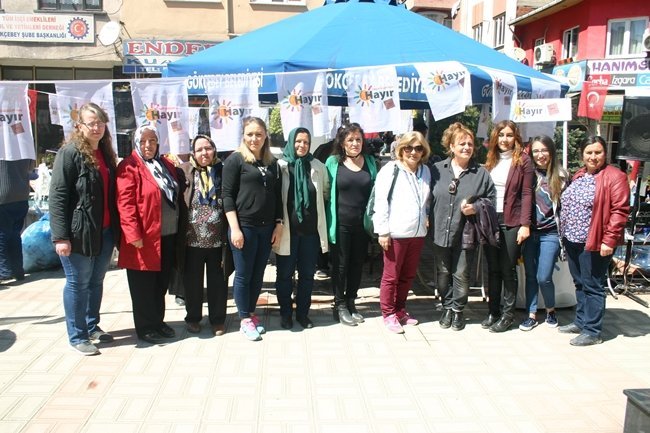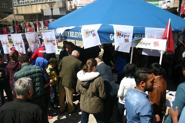 Yaklaşan 16 Nisan anayasa referandumu ve halk oylaması çerçevesinde “Hayır” etkinliklerine devam eden CHP Gökçebey İlçe Başkanlığı, günlerden Cuma ve Gökçebey’in Pazar olması dolayısıyla Atatürk anıtında stant açarak vatandaşlara “Hayır” kampanyası çerçevesinde tulumba tatlısı, limonata ikram etti ve Türk bayrağı takdim ettiler.