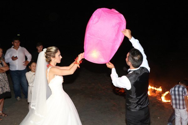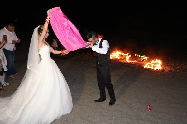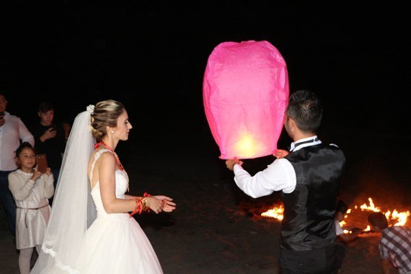 Türkali Sahil Plajında yapılan düğün törenlerine çok sayıda kalabalık vatandaş topluluğu katıldı. Berkan ve Ece Durmaz çifti burada gönüllerince eğlendi. Programın sonlarına doğru genç çiftler sahilde dilek balonunu yakarak uçurdu. Ayrıca düğünde Gürsoy organizasyon tarafından gençler için hazırlanan özel havai fişek ve Ece ve Berkan’ın baş harflerinden oluşan meşaleler ise geceye renk kattı.
