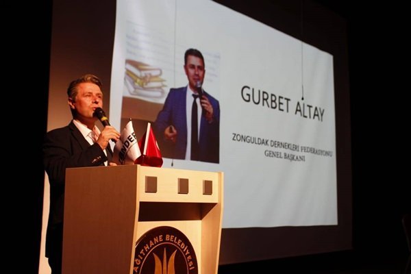 Sonrasında Zonguldak Dernekleri Federasyonu Genel Başkanı Gurbet Altay; “Bizler dedik ki “hiçbirimiz hepimiz kadar güçlü değiliz.Biz bilirkte daha da güçlüyüz..” dedik.Sadece demekle kalmayıp bunu uygulamaya da geçirdik.İşte şu manzara bize onu gösteriyor.Bir hafta önce Kadın ve Aile komisyonu Başkanımız Sevilay Karapınar hanımefendi ile “kadın olmak” paneli ile Beşiktaş’taydık. Şimdi de T.C.İlk İLİ Zonguldak ile değerli yazarımız Ahmet yaşar Akkaya ile buradayız. Yani Zonguldaklılar her yerde. Bu dalga dalga devam edecek. Bizlerin tecrübesi, gençlerin enerjisi ile Zonguldaklılar her yerde olacaktır. Öncelikle Mustafa Kalaycı başkanıma ve emeği geçen herkese teşekkür ederiz.” dedi.
