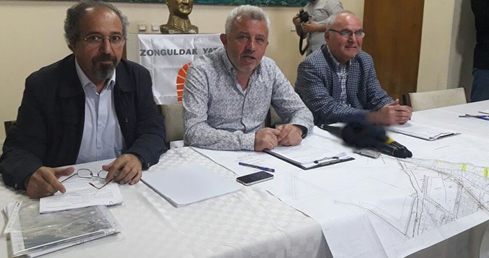 Ortaöğretim alanında kalan 5445 parselimiz için Belediye Başkanı tarafından ısrarla parka dönütüştürülmesi ve Belediye terk edilmesi istendi. Bizim tarafımızdan alternatifli olarak iki ayrı plan önerisi düzenlendi ve Muhammet beye teslim edildi. İlk önce park alanı olarak çizilen proje teslim edildi. Fajat daha sonra son toplantıda Filyos’un geliştiğini ve okul alanına ihtiyaç duyulabileceğini, bu yüzden “Ortaöğretim Tesis Alanı” olarak kalmasına birlikte karar verildi. Biz bu planı verdikten sonra, bize verilen 03.05.2017 tarih ve 511 sayılı yazı ile bu planların Revizyon planlarında değerlendirileceğini söyleyerek süreç durduruldu.  Biz daha sonra Çevre ve Şehircilik İl Müdürlüğü’ndeki İmar Şube Müdürlüğü’ne gittik. Buradan aldığımız bilgiye göre Revizyon İmar Planlarının 5 Ağustos 2016 tarihinde imzalanıp Çevre ve Şehircilik Müdürlüğü’ne teslim edildiğini öğrendik. Bahsettiği Revizyon İmar Planı buysa, Revizyon yapılmış teslim edilmiş durumdadır. Şimdi bize yazdığı yazıda bahsedilen bu neyin Revizyon planı? Futbol sahası yapılamıyorsa bunun suçlusu biz değiliz. Biz bugüne kadar 5 kere plan değiştirdik. Mevzuat çerçevesinde Başkan ne dediyse yaptık. Biz fazladan kat istemedik, emsal artışı istemedik. Yan parsele ne verildiyse oran olarak onu istedik. En son projemiz, Şehir Plancımız tarafından imzalı olarak Belediyeye 2017 Nisan ayında sunulmuştur. İmar Müdürü Muhammet beye sorabilirsiniz. Biz Belediye Başkanını konuyu tamamen çarpıtmış olup Belediye Başkanının ne yapmaya çalıştığını anlamadık”