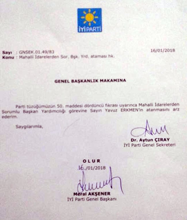 Zonguldak eski Valisi Yavuz Erkmen’in İYİ Parti Başkan Yardımcılığı görevine getirildiği öğrenildi..