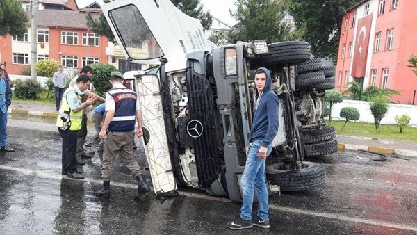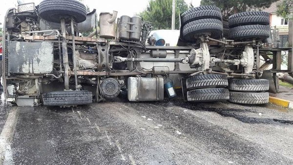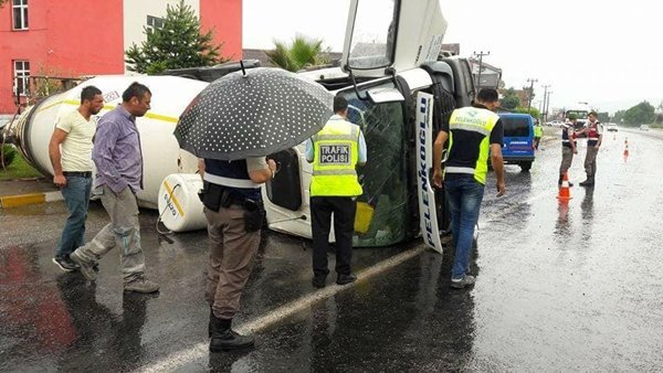 Alınan bilgiye göre olay Çaydeğirmeni beldesinde meydana geldi. Sürücüsü henüz belirlenemeyen ve bir hazır beton şirketine ait mikser Çaydeğirmeni beldesi trafik ışıklarının bulunduğu yerden kontrolden çıkarak devrildi. Kaza ucuz atlatıldı. Devrilen mikser çekici yardımıyla yoldan kaldırıldı.