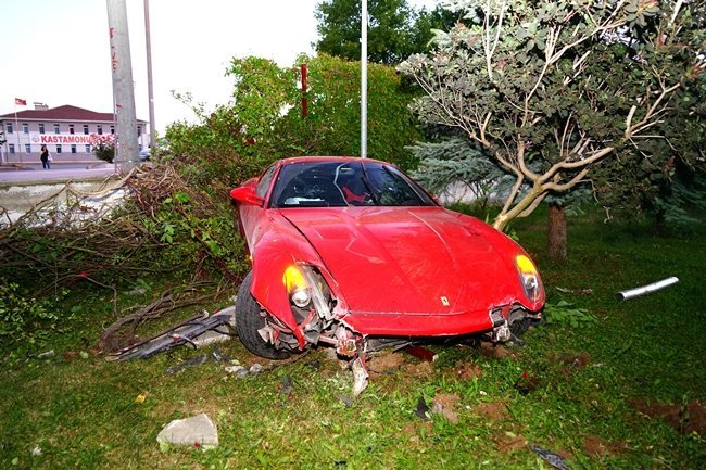 Edinilen bilgiye göre, Kastamonu’da Kuzeykent Mahallesi Kamil Demircioğlu Caddesi üzerinde Muammer Tahir Raşitzaimoğlu idaresindeki B 599 THR Romanya plakalı Ferrari marka otomobil, sürücüsünün direksiyon hakimiyetini kaybetmesi sonucu yoldan çıkarak Kastamonu Fen Lisesinin istinat duvarını aştı ve okulun bahçesine uçtu. Kazada yaralanan olmazken, Ferrari marka aracın kaza yaptığını duyan vatandaşlar ise kaza yerine geldi.