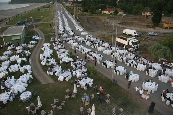 Zonguldak’ın Çaycuma ilçesine bağlı Filyos beldesinde Filyos Belediyesi tarafından Stadyum Caddesi üzerinde yaklaşık 4 bin kişiye Ramazan ayı dolayısıyla iftar yemeği verildi. Yemeğe çok sayıda kalabalık topluluk katıldı.