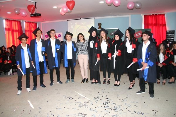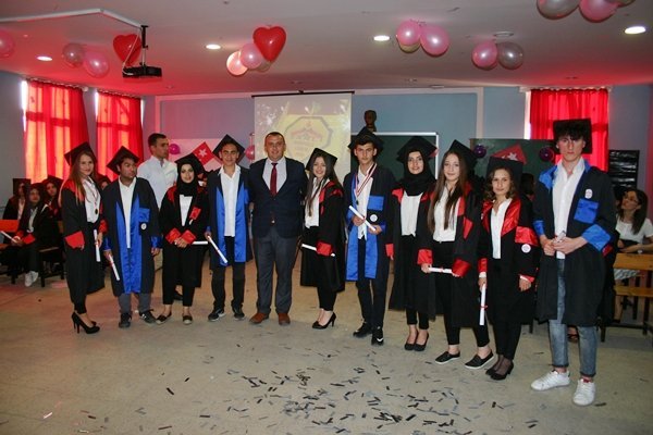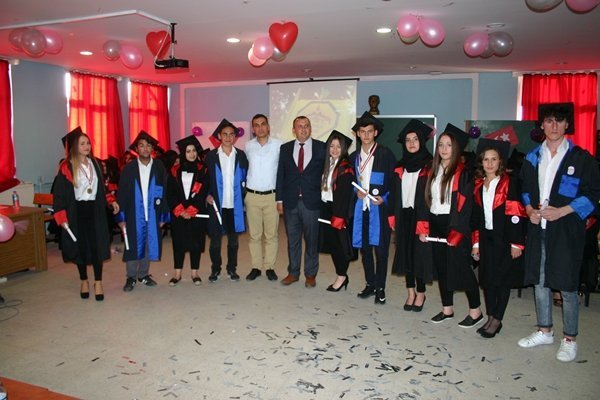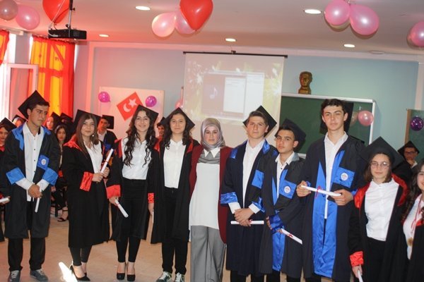 Ardından tüm mezun olan 53 öğrenciye öğretmenler tarafından mezuniyet belgeleri takdim edildi. Törenin ilerleyen dakikalarında slayt gösterileri izlendi. Törenin sonunda okulun bahçesinde tüm mezun olan öğrenciler müzik eşliğinde kep fırlatarak gönüllerince eğlendi. (Haber-Foto: Anıl TAŞKIRAN)
