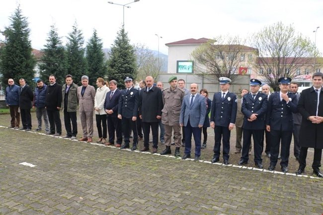 Hükümet Konağı önünde düzenlenen törene; İlçe Kaymakamı Gökhan Öztürk, İlçe Jandarma Karakol Komutanı Üsteğmen Bekir Kul, İlçe Emniyet Komiser Yardımcısı Mehmet Taşkın, İlçe Özel İdare Müdürü İzzet Turpcu, Mal Müdürü Kadir Çelik, İlçe Milli Eğitim Müdürü Fazıl Aytaş, Kaymakamlık çalışanları ile daire amirleri ve polis memurları katıldı.