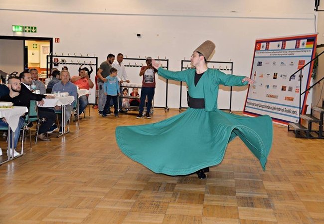 İftar yemeği programında Grup Merhamet’in söylediği ilahi eşliğinde Semazen gösterisi de yapıldı. İlahi ve Semazen gösterisi katılımcılardan büyük ilgi ve alkış aldı.