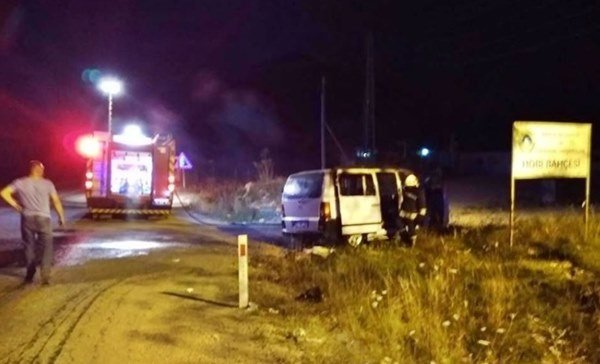 Bartın’da dün gece iki aracın çarpışması sonucunda meydana gelen kazada minibüste yangın çıktı.