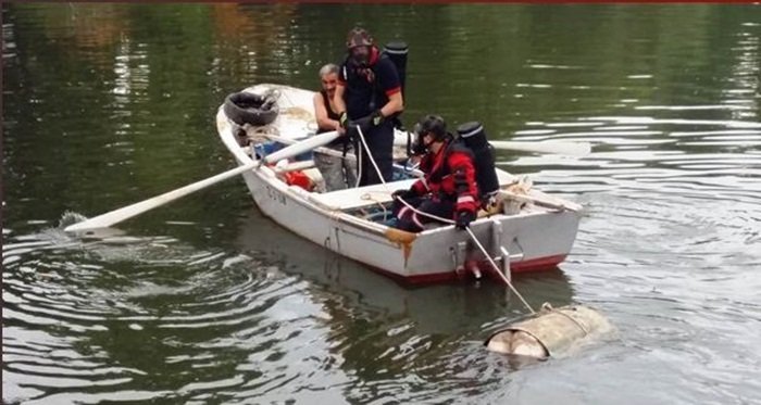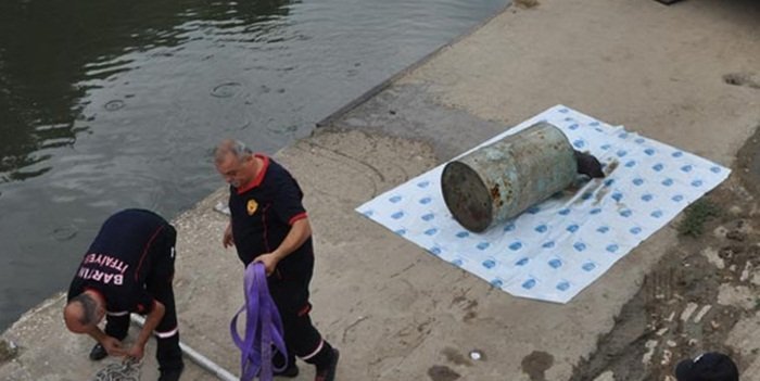 Teknede bulunanlar durumu polise bildirdi. Olay yerine gelen polis ekipleri, çevrede geniş güvenlik önlemi aldı. Ekipler, kötü kokuların yayıldığı varildeki cesedi sudan çıkarmak için tekneyle yanına gitti. Varil, yaklaşık 200 metre uzaklıktaki Yalı mevkiine getirildi, ardından kıyıda bulunan vince bağlanarak sudan çıkarıldı.