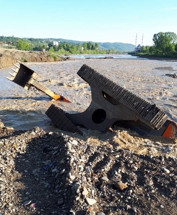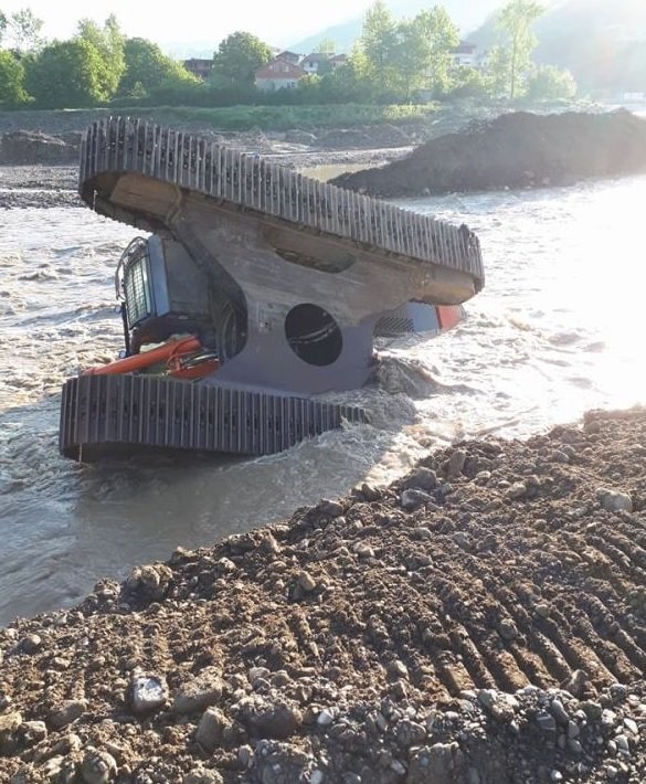 Devam eden baraj inşaatında, İş makinesi akşam ırmak kenarına park ettiği ekskavatörü , suların yükselmesi ile birlikte zeminin çökmesi sonucunda sabah suya devrilmiş halde buldu. Suya devrilen iş makinesinin başka bir iş makinesi ile sudan çıkartılacağı öğrenildi. (Bartın Olay Medya)