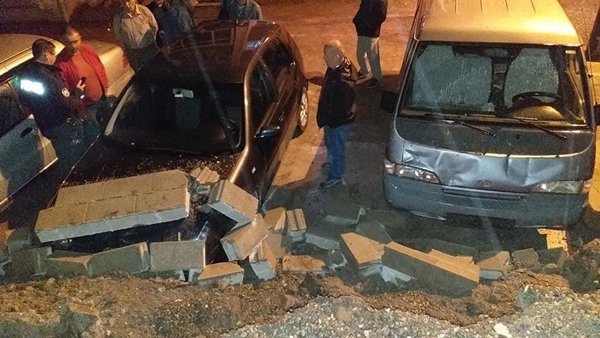 Zonguldak’ın Alaplı ilçesinde Belediyenin Yeni Siteler Mahallesi R Bloklar ara sokakta yaklaşık 15 gün önce beton briket örmek suretiyle yaptığı istinat duvarı çöktü; park halinde bulunan 4 araçta maddi hasar meydana geldi.