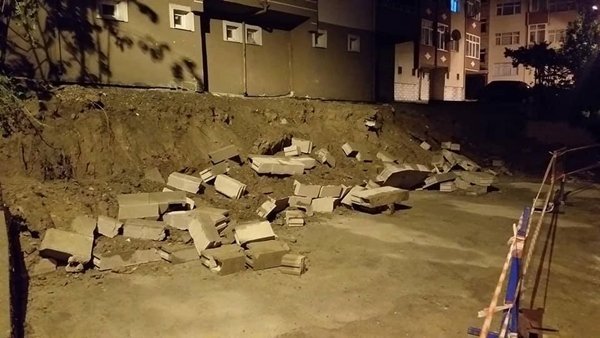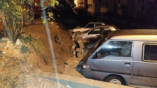Şiddetli yağmurun da etkisiyle meydana gelen çökme, mahalle sakinlerini de korkuttu. Yeni yapılan duvarın tamamen çöktüğü gözlenirken, park halinde bulunan araçlarda da maddi hasar meydana geldi. Belediye ekipleri de çökmenin ardından olay yerine gelerek inceleme yaptı.