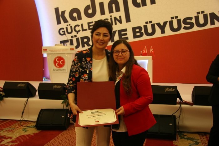 MHP Kadın Kolları Koordinatörü Nevin Taşlıçay’ın sunumuyla “2023 Stratejik Hedefler” konulu sunum gerçekleştirildi. “Yüz Akı Kadınlar” oturumunun ardından akşam üstü konser etkinliği düzenlendi. Toplantının son gününde “MHP ve Demokrasiye Bakış”, “Siyasal İletişim Eğitimi”, “Sosyal Medya Eğitimi”, “Dilek ve Temenniler” söyleşiler yapıldı. Toplantının sonunda 3 günlük kampa giren tüm il ve ilçe başkanlarına MHP Kadın Kolları Koordinatörü aynı zamanda MHP Ankara Milletvekili Nevin Taşlıçay tarafından sertifikalar takdim edildi. Öte yandan Zonguldak’tan bu toplantıya katılan İl Kadın Kolları Başkanı Mevlüde Yalçıner, Kdz Ereğli İlçe Başkanı Ela Karabulut, Kozlu İlçe Başkanı Türkan Özdemir, Alaplı İlçe Başkanı Şerife Oktay, Devrek İlçe Başkanı Nursen Atar, Çaycuma İlçe Başkanı Sevim Candan ve Kilimli İlçe Başkanı Derya Karagöz eğitime katılım sertifikaları aldılar. Toplantının ardından günün anısına hatıra fotoğrafı çektirildi. (Haber Merkezi)