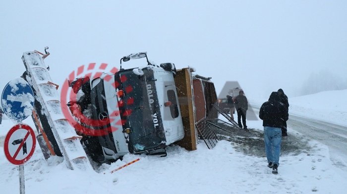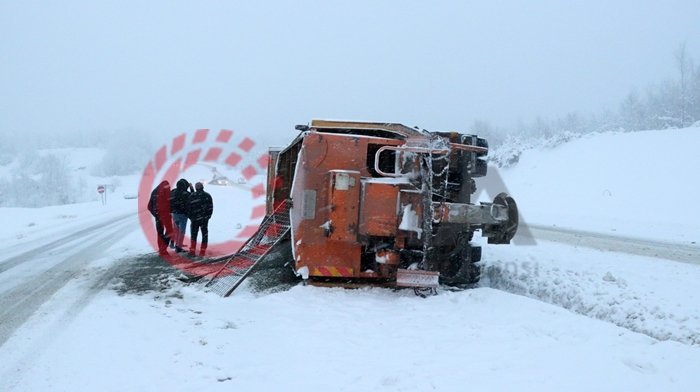 Zonguldak-İstanbul karayolunun Ereğli kesiminde karayollarına ait kar küreme aracı devrildi. Kazada yaralanan olmazken, polis ve jandarma ekipleri kış lastiği ve zinciri olmayan araçların geçişine izin vermiyor.
