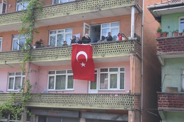 Antalya’nın Kemer ilçesine bağlı Ovacık Mahallesinde geçtiğimiz gün yaşanan maden faciasında hayatını kaybeden madenci Levent Korkmaz için ilk olarak evinin önünde Kuran-ı Kerim okundu ve dualar edildi. Cenazeye çok sayıda vatandaş topluluğu katıldı. Bu arada evinin bulunduğu balkona da Türk bayrağı asıldı. Burada düzenlenen cenaze namazından sonra Korkmaz’ın cenazesi son olarak burada kalabalık topluluğu önünde helallik alınmasının ardından cenaze aracına konulması sırasında Korkmaz’ın annesi Bahtiyar Korkmaz, “Emanetlerine bakacağım oğlum, gözün arkada kalmasın” diye feryat etti.