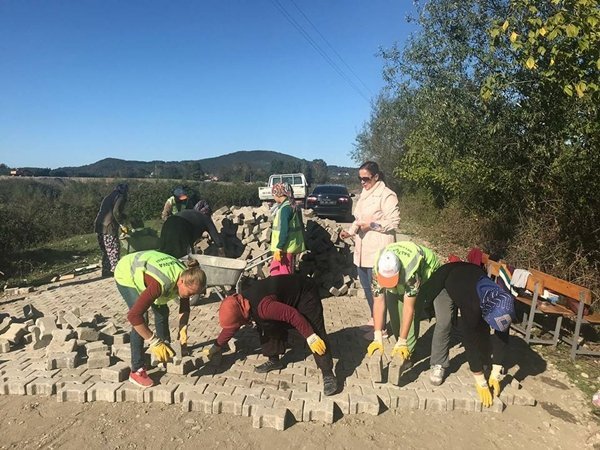 Zonguldak’ın Çaycuma ilçesine bağlı Saltukova beldesinde İŞKUR aracılığıyla belediyede çalışan bayanlar beldenin Düz Mahallesinde parke taşı döşeme işine başladı.