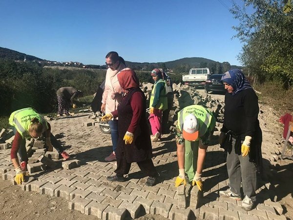 Zonguldak’ın Çaycuma ilçesine bağlı Saltukova beldesinde İŞKUR aracılığıyla belediyede çalışan bayanlar beldenin Düz Mahallesinde parke taşı döşeme işine başladı.