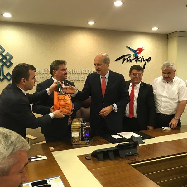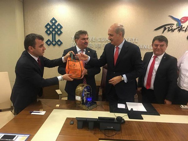Çaycuma Ak Parti İlçe Başkanı Ahmet Çolakoğlu beraberinde Ak Parti Zonguldak Milletvekili Faruk Çaturoğlu, Saltukova Belediye Başkanı Zerrin Güneş, Nebioğlu Belediye Başkanı Ertan Aydoğan ve Filyos Belediye Başkanı Ömer Ünal ve belde belediye başkanları birlikte geçtiğimiz hafta değişen yeni kabine de Kültür ve Turizm Bakanı Numan Kurtulmuş’a ziyaret gerçekleştirerek kendisine manda yoğurdu takdim ettiler.