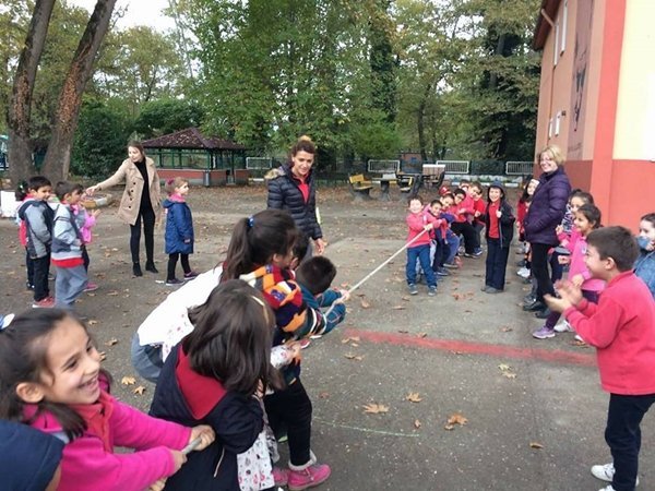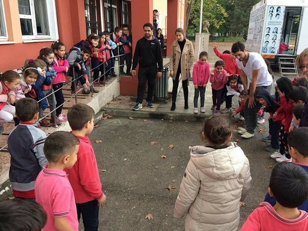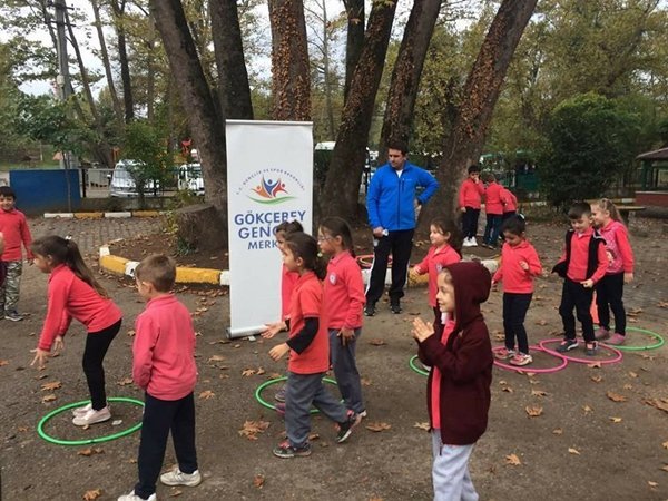 Etkinlikler kapsamında öğrencilere, çemberle işbirliği, dairesel bayrak oyunu, el değdirerek bayrak ve koordinasyon oyunları anlatıldı. (Haber Merkezi)