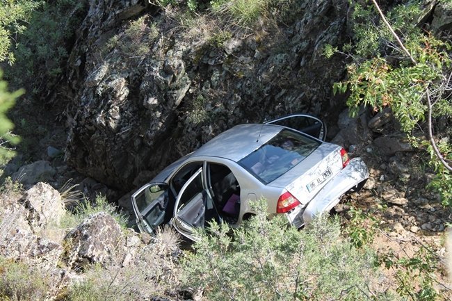 Kastamonu’nun Tosya ilçesinde 25 metrelik uçuruma uçan bir otomobilde bulunan 4 kişi, kazayı şans eseri yaralı atlattı.
