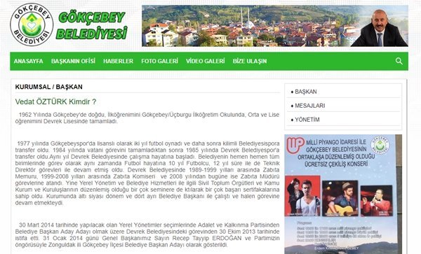 Geçtiğimiz günlerde istifası Ak Parti Genel Merkezi tarafından istenilen ve ardından Belediye Başkanlığından ve Ak Parti’den istifa eden Gökçebey Belediye Başkanı Vedat Öztürk’ün Belediye web sitesindeki ismi ve Başkanlık bölümü güncellenmediği gözlendi.
