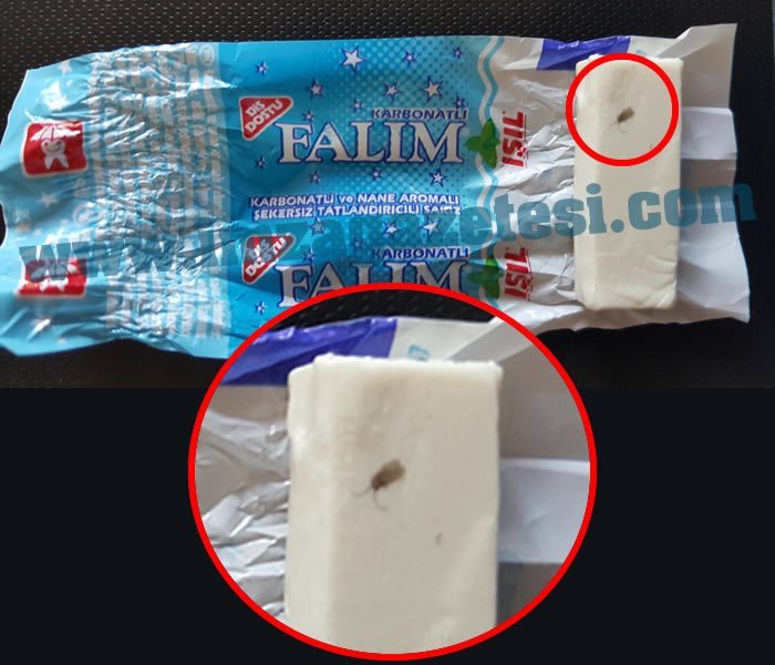 Türkiye çapında sakız üreticisi olan falım markasının sakızının içinden güve çıktı.