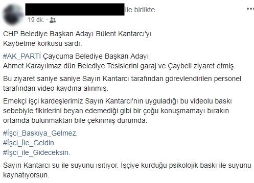 Sosyal medyada büyük bir yankı uyandıran bu iddia sonucunda Çaycuma Belediye Başkanı Bülent Kantarcı’nın seçimleri kaybetme korkusu sardığı, işçiye kurduğu psikolojik baskı ile Kantarcı’nın kendi suyunu kaynattığı olarak tanımlandı. (Haber Merkezi)