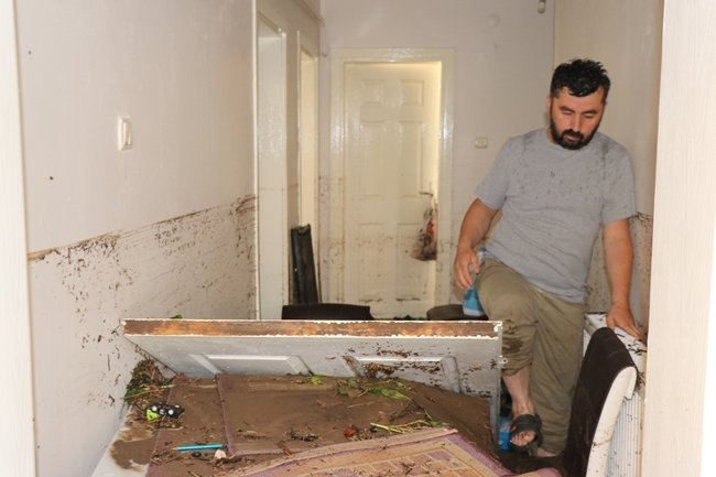 Kavaklık Mahallesi’nde ise Vedat Ayçiçek, eşi ve üç çocuğu ile birlikte evinde uyurken sele yakalandı. Son anda çocuklarını ve eşini dışarı çıkartmayı başaran Ayçiçek’in evinin içerisi yaklaşık 1 metre sularla doldu. Evindeki tüm eşyalar kullanılamaz hale gelen Ayçiçek, kirada oturduğunu, mağdur olduğunu ve yetkililerden yardım beklediğini söyledi. Kavaklık Mahallesi’nde Kdz. Ereğli Belediyesi Düğün Salonu ile yan tarafında bulunan tekstil atölyesi de Kabasakal deresinin taşması nedeniyle sular altında kaldı. Yaşanan sel nedeniyle düğün salonu kullanılamaz hale gelirken, tekstil atölyesinde ise işçiler temizlik çalışması başlattı.