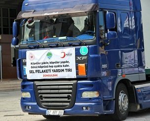 Batı Karadeniz bölgesinde sele maruz kalan afetzede vatandaşlarımız için başlatılan yardım seferberliğinde Zonguldak Valiliği himayelerinde Zonguldak Belediye Başkanlığı ve Türk Kızılay’ı Zonguldak Şubesinin işbirliğinde hazırlanan yardım malzemesi yüklü dört Tır ve bir kamyon Vali Mustafa Tutulmaz, milletvekilleri Hamdi Uçar, Ahmet Çolakoğlu, Belediye Başkanı Dr. Ömer Selim Alan, Zonguldak Bülent Ecevit Üniversitesi Rektörü Prof. Dr. Mustafa Çufalı, Vali Yardımcısı Yıldırım Uçar, Kozlu Kaymakamı Hüseyin Ergi, İl Emniyet Müdürü Fahri Aktaş, İl Jandarma Komutanı Albay Gönen Süslü, , Kilimli Belediye Başkanı Kamil Altun, siyasi parti ve sivil toplum kuruluşlarının temsilcileri, il protokolü ve vatandaşlarımızca Kastamonu’ya uğurlandı.