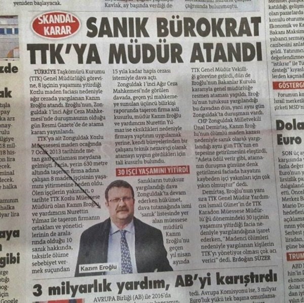 Sözcü Gazetesi, bugünkü haberinde TTK Genel Müdürü Kazım Eroğlu yerine Zonguldak Kömürspor Başkanı Süleyman Caner’in fotoğrafını kullandı.