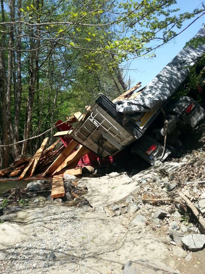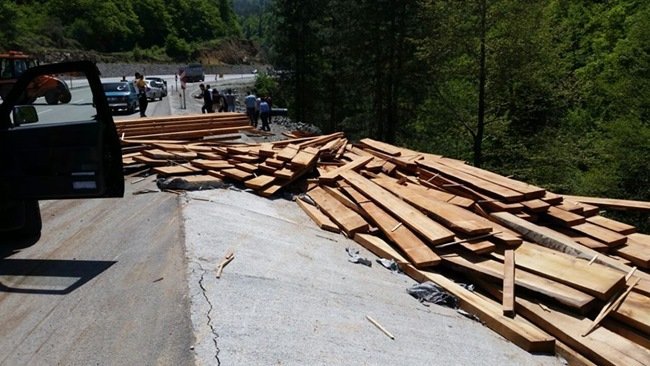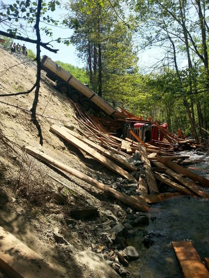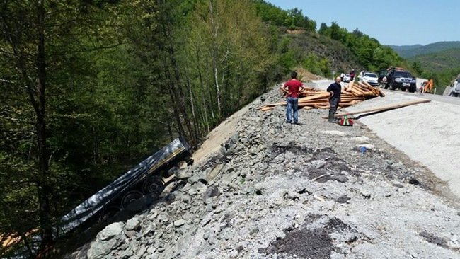 Zonguldak’ın Devrek ilçesi Ankara asfaltı üzerinde meydana gelen kazada kereste yüklü TIR kontrolünü kaybedince yoldan çıkarak dereye uçtu. TIR’ın dorsesinde yüklü olan keresteler ise yola ve etrafa saçıldı.