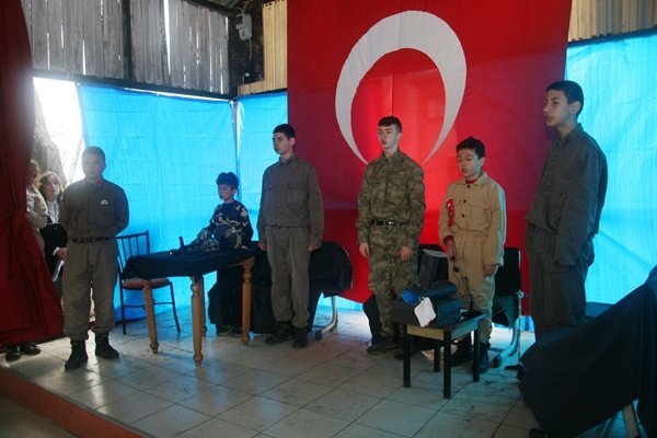 Programın ardından fotoğraflarla “Çanakkale” resim sergisi ile Çanakkale Savaşı’nda askerin yediği buğday çorbası, ekmek ve üzüm hoşafı ikramında bulunuldu. (Haber-Foto: Anıl TAŞKIRAN)