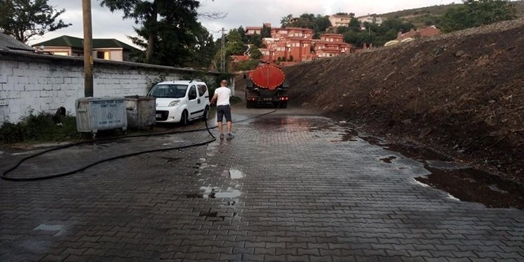 Köy muhtarı Bahattin Durkut’un yaptığı girişimler çerçevesinde Filyos ve Kilimli Belediyesi’nden gelen vidanjörlerle sahil yolunda yıkama çalışması devam ediyor. (Haber : ZONMEDYA)