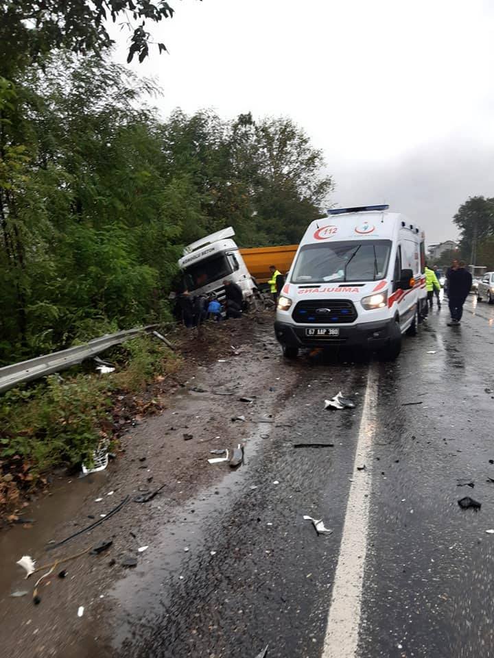 Zonguldak’ın Devrek ilçesi Çaydeğirmeni beldesinde 2 TIR’ın karıştığı zincirleme kaza meydana geldi.